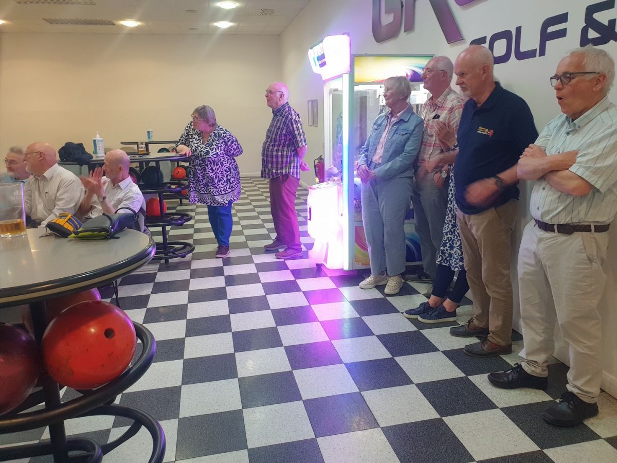 As usual there were a lot of gutters, quite a few spares and a few strikes. The top score was with Rotarian Paul Weir getting 90 ...Great job Paul! Though Ralph got 101, but he had help from Dave!