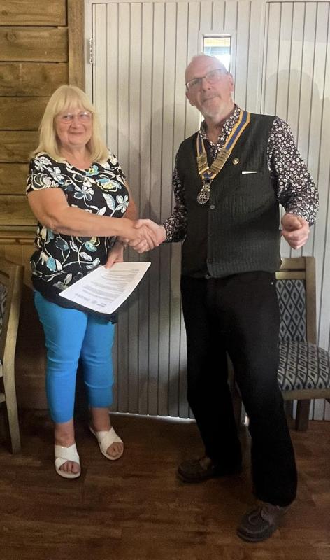 Photo: Rhondda Rotary President Martyn Lyons welcoming Lynfa to the club.