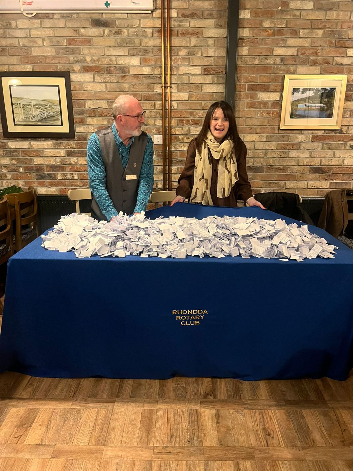 Rhondda Rotary prints 20,000 raffle tickets (prizes: 1st £500, 2nd £200, 3rd £100) and offers them to local youth groups & community organisations to sell for £1 each.