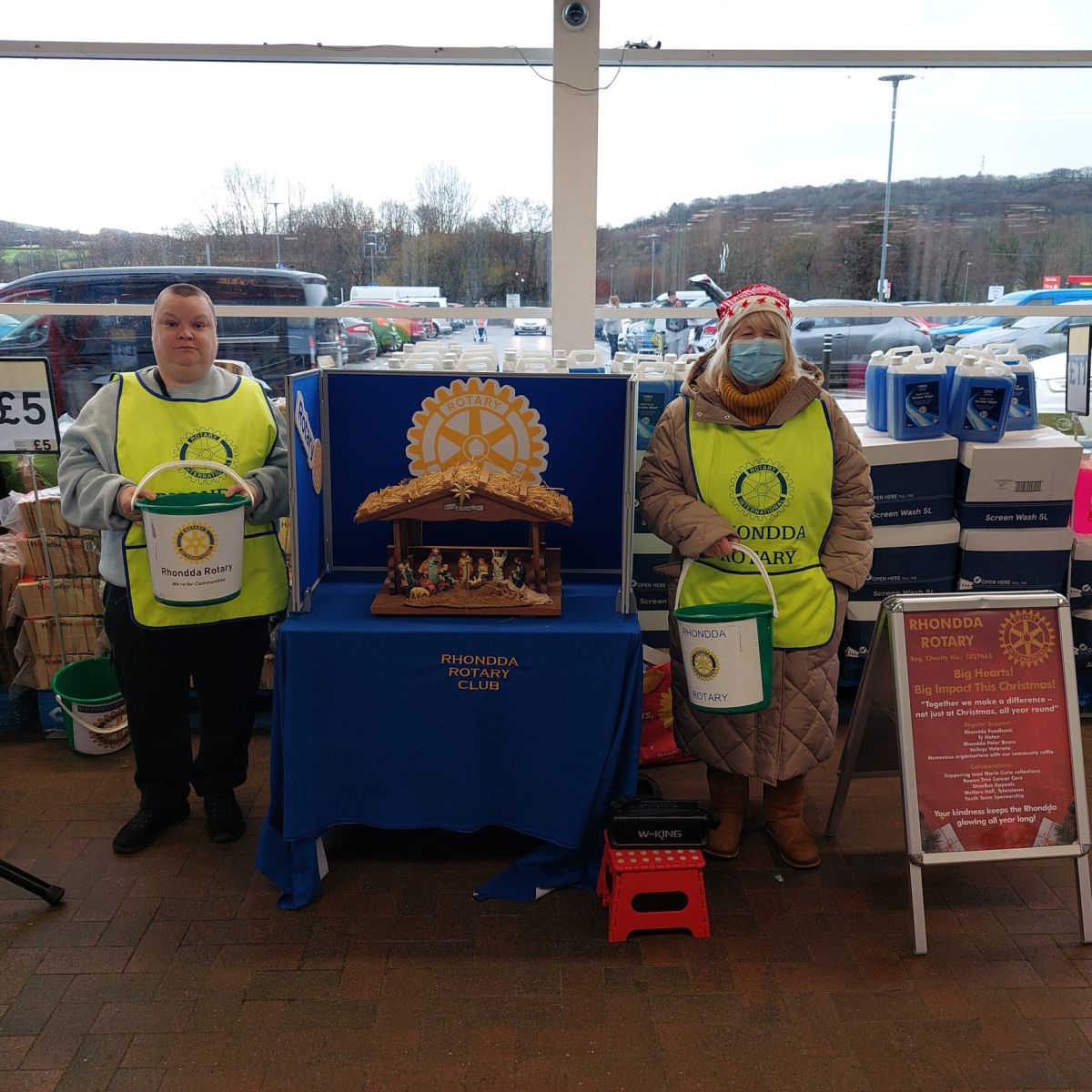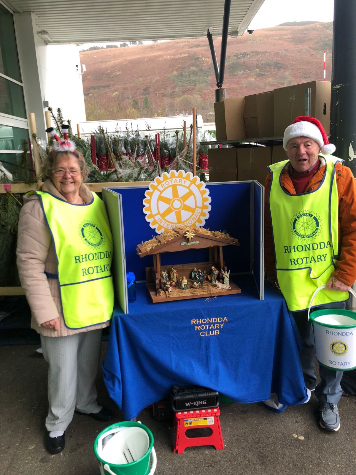 A selection of photos of Rhondda Rotary members and “Buddies “, at this year’s Nativity Bucket Collections.