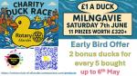 Allander - £1 a duck. Buy your ducks online up to 11pm on 6th Jun or at Tesco Mon 2nd, Wed 4th or Fri 6th from 10am to 2/4pm or then on 7th at Rotary Gazebo in Milngavie. Sales online at https://rotary-club-of-allander.sumupstore.com/ Prize details below.