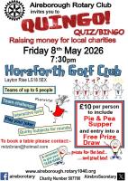 RC Aireborough As usual Quirky subjects for rounds plus this year two games of points scoring Bingo for Teams of Six at £10 per person with Pie and Pea Supper and a Free Prize Draw. Book your table at mitzibrian@hotmail.com