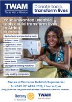 RC Redditch Kingfisher Your unwanted useable tools could transform lives in Africa - don't throw them away - we will ensure they go to a good cause. Bring them along to Mossisons in Redditch, look for our blue Rotary Club tent outside the entrance.