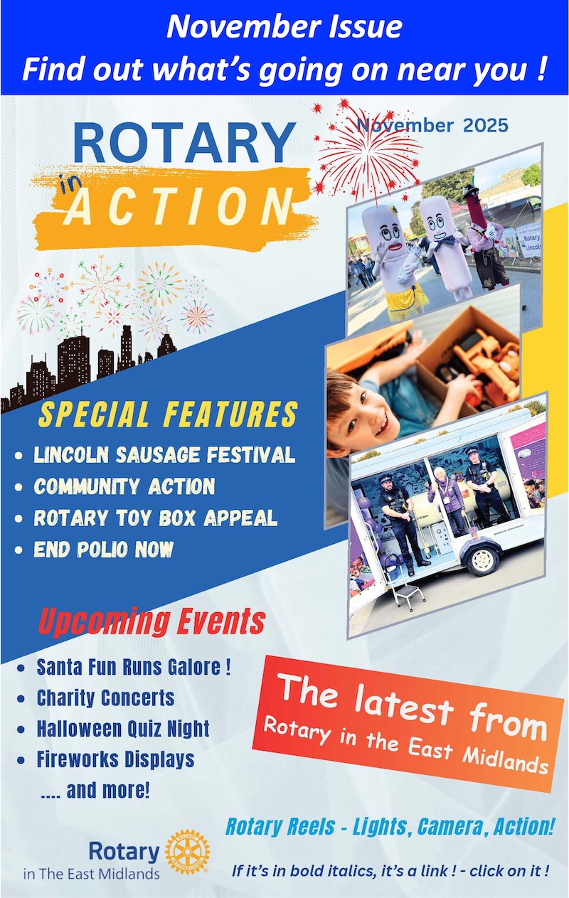 Rotary in The East Midlands (District 1070) comprises over 1,600 Rotarians in 70 Rotary Clubs, Satellite Clubs and Impact groups, led by District Governor, Moira Penney.