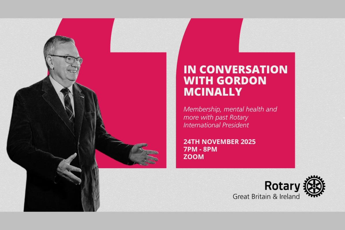 We are delighted to announce that Past Rotary International President Gordon McInally will join us in an online conversation to share his views on membership, its links with our public image and how our Action Plan drives everything we do on 24th November at 7pm.