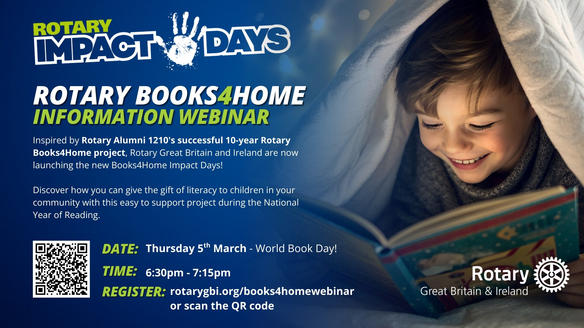 More information is available at Rotary Books4Home - Rotary GB&I Members Area and supporting materials will be available on 5th March.