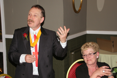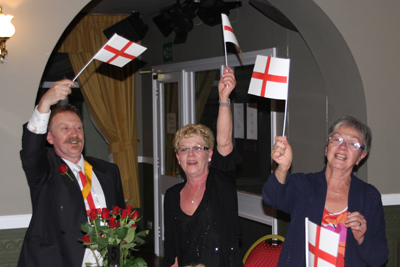 The Chilton Hotel glowed with the colours of red and white, from banners around the walls, St.George's flag on every table and a fresh red rose for every diner. Visitors from other clubs mingled with our own guests, some of whom would receive a pleasent surprise before the night was over.