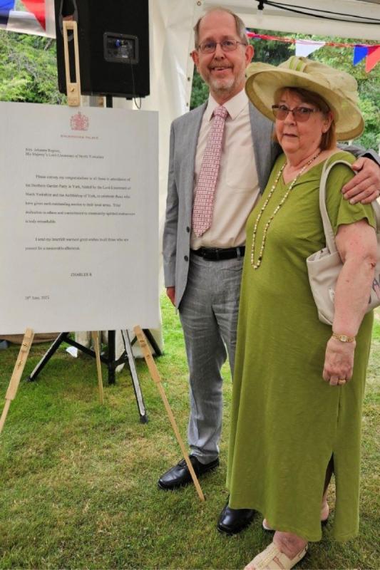 So it was with especial pleasure this year that we received an invitation to a garden party organised by the Lord Lieutenant of North Yorkshire, Johanna Ropner, on Saturday the 28th June at the Deanery in York. Nick Medcalf (who provides the link to the Two Ridings Foundation) and his wife Beryl represented our club. The weather was kind and a large turnout of guests from a wide range of community organisations enjoyed afternoon teas in the marquee accompanied by live music from two bands. The numerous ways in which people in our region help to build, connect and empower the community was recognised in addresses given by the Lord Lieutenant, the Archbishop of York and by the Dean, whose garden we were enjoying.