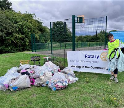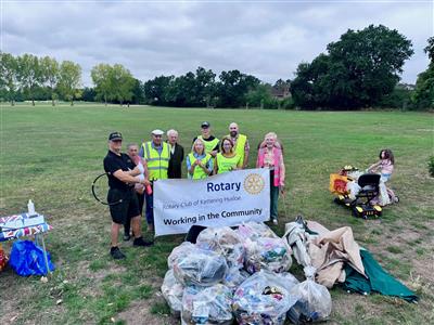 We had 24 volunteers join us and we collected 22 bags of litter. Afterwards we all enjoyed a cup of tea, some homemade cake and a natter. We squashed the drink cans and these were given to the HeliPad Appeal. We were also joined by the Mayor of Kettering!