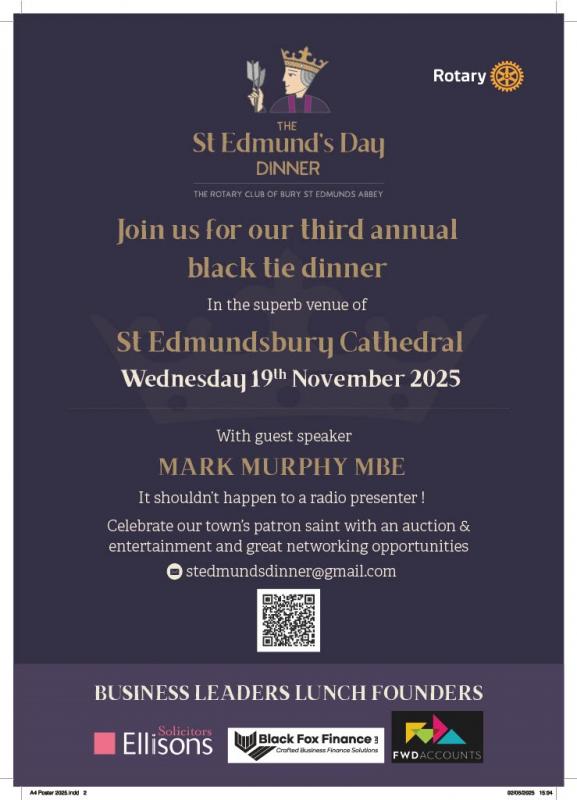 The St Edmund’s Day Dinner is set to return this year to the stunning St Edmundsbury Cathedral, where we invite residents and visitors alike to join us in celebrating our Patron Saint’s Day in grand style.