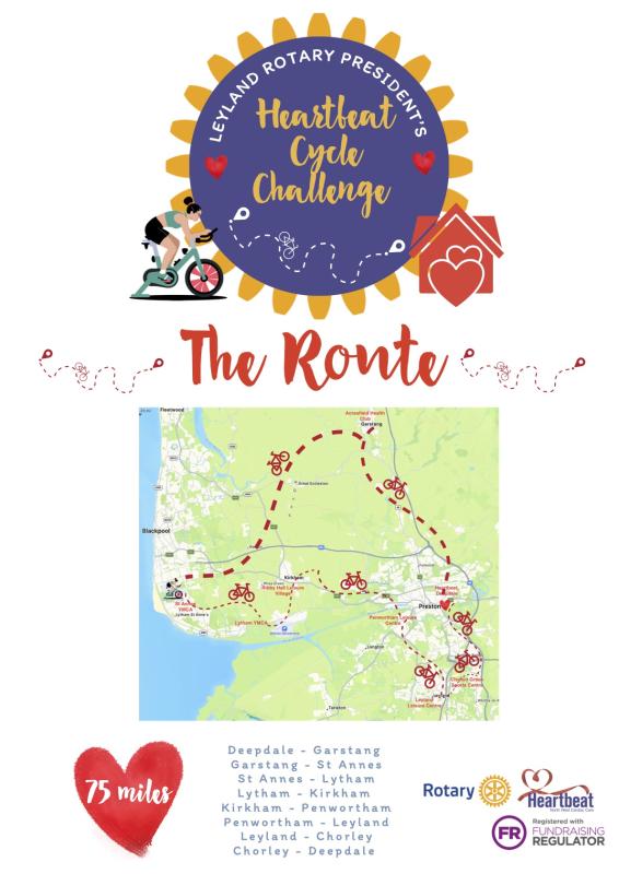 We are challenging people to join us in our exercise bike challenge to ride the 75 miles around all the Heartbeat centres which are located in Leyland, Preston, Penwortham, Garstang, Kirkham, Lytham, St Annes and Clayton-le-Woods by: