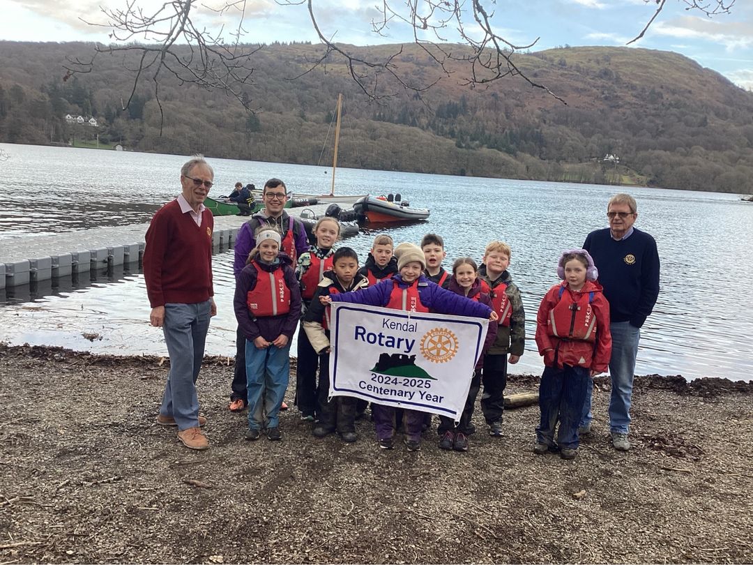 Rotarians Roger Downing and David Oates met the children from St Thomas School, Kendal who were enjoying their residential at YMCA Lakeside. The children's outdoor adventure was partly funded by Kendal Rotary Club using funds raised by last summer's Dragon Boat Regatta jointly organised by the Rotary Club and YMCA Lakeside.