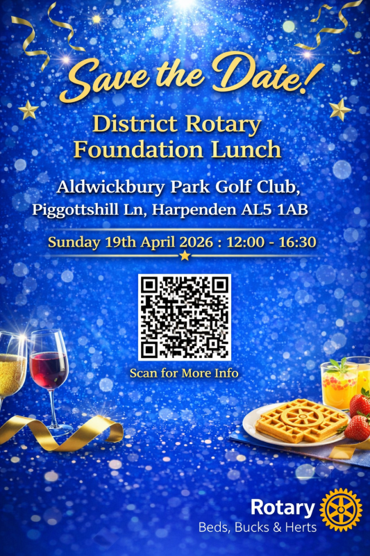 Join us for an afternoon of inspiration, fellowship, and celebration at the annual District Rotary Foundation Lunch. This year, we gather to hear how our charity, The Rotary Foundation, continues to make a profound impact globally through its mission of "Doing Good in the World."