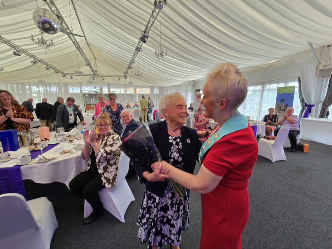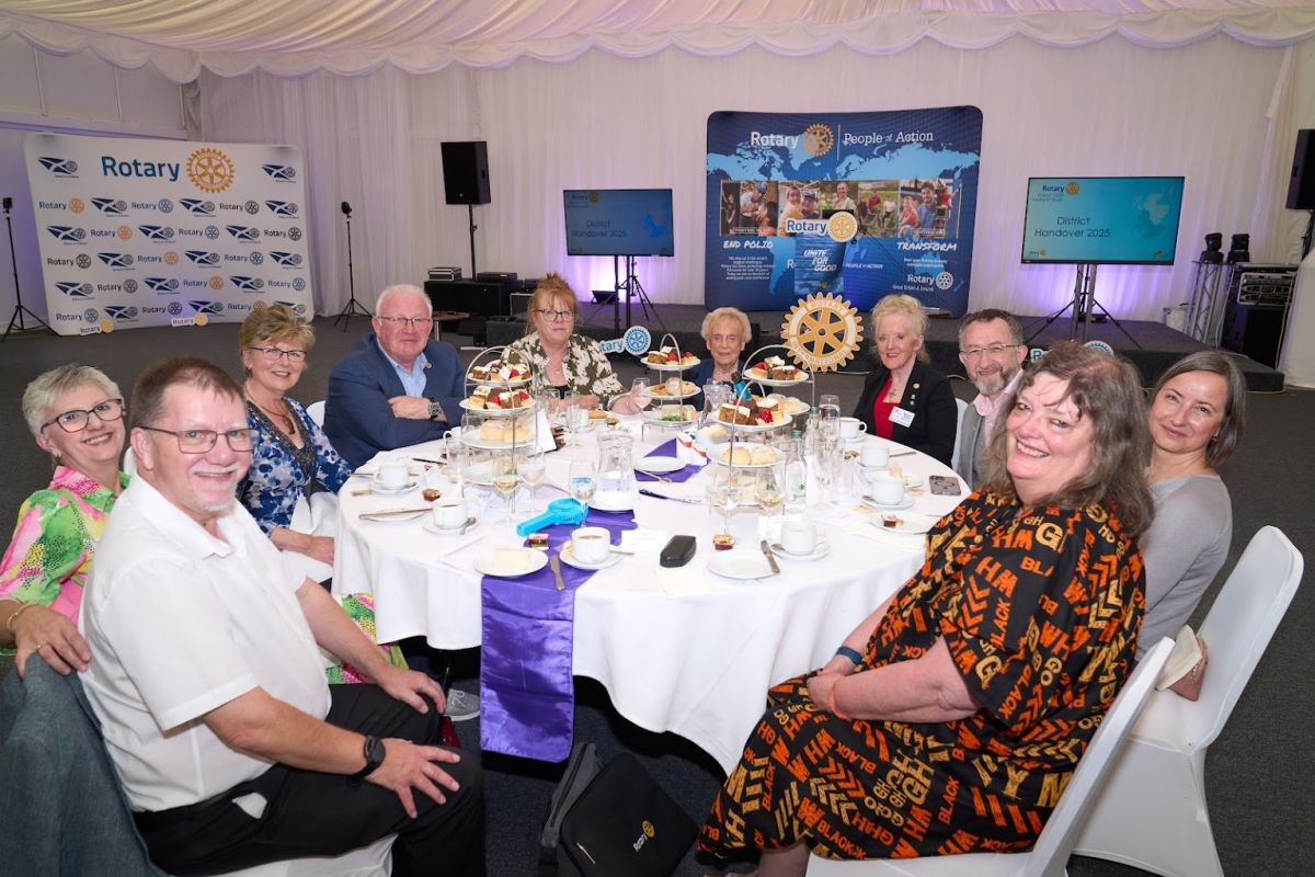 This year's District Handover was less formal than in previous years, with an afternoon tea at the Alona Hotel. Sandwiches, scones and strawberry tarts were capped with a look at some highlights of clubs' activities throughout the year, some presentations for service to the District, the presentation of a new club's charter, the installation of new District Governor Brenda and the introduction of her team.