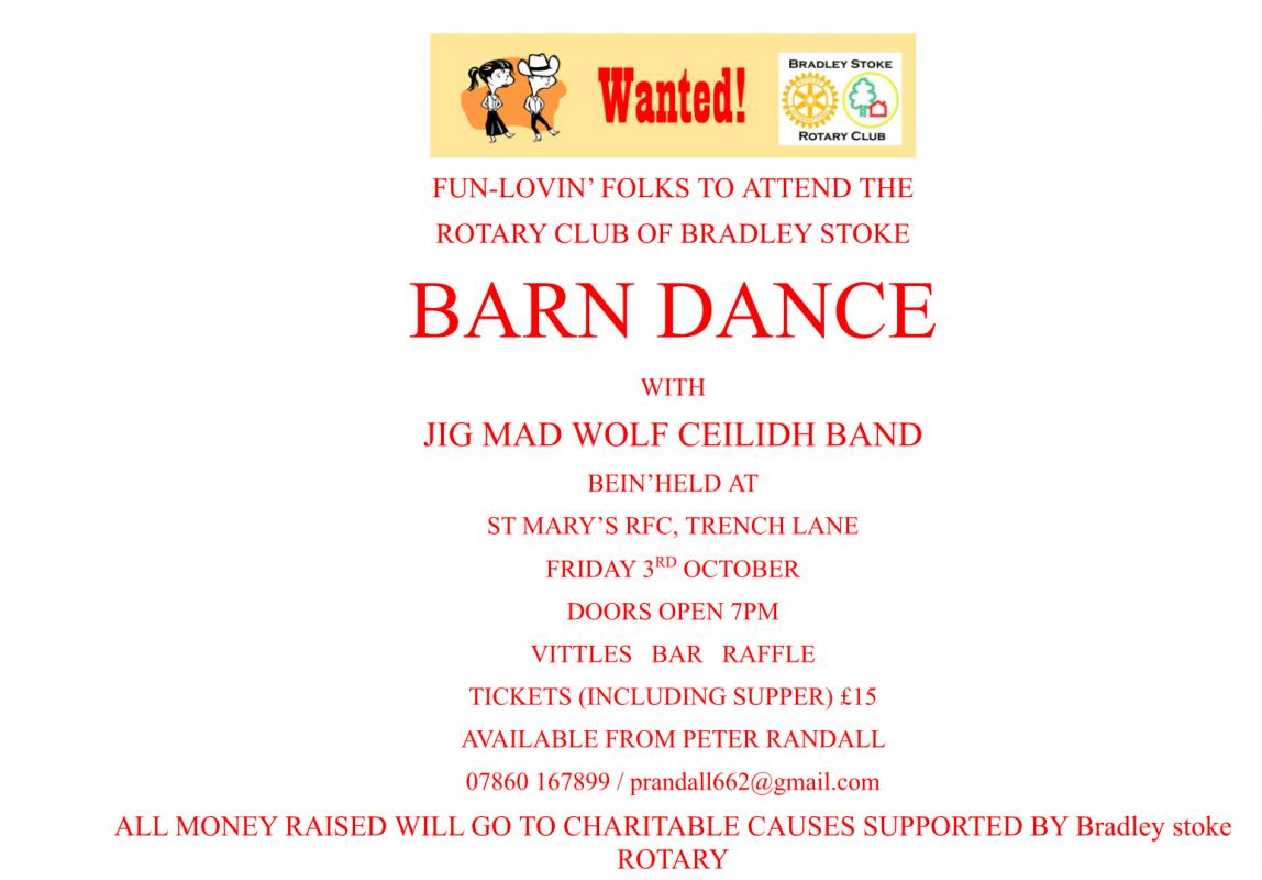back Each year Bradley Stoke Rotary club organise a Barn Dance at St Marys Rugby Club