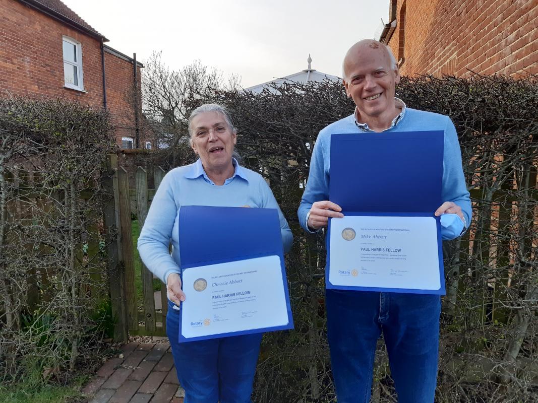 At the end of the Q & A session Rotary President Rangesh surprised them both by awarding them a Paul Harris Fellowship - this Rotary award recognises exceptional service to the local community. Mike & Chrissie are certainly local heroes to all the needy families that have been supported since they launched Midhurst Foodbank and deserve to be recognised!!!