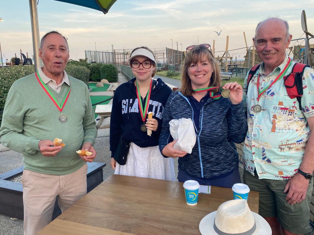 Robin Taylor, who had organised the event, gave out the prizes and medals. Mostly all going to the White family, however, Yvonne Cope did win the most "Hole-in-one's" medal.