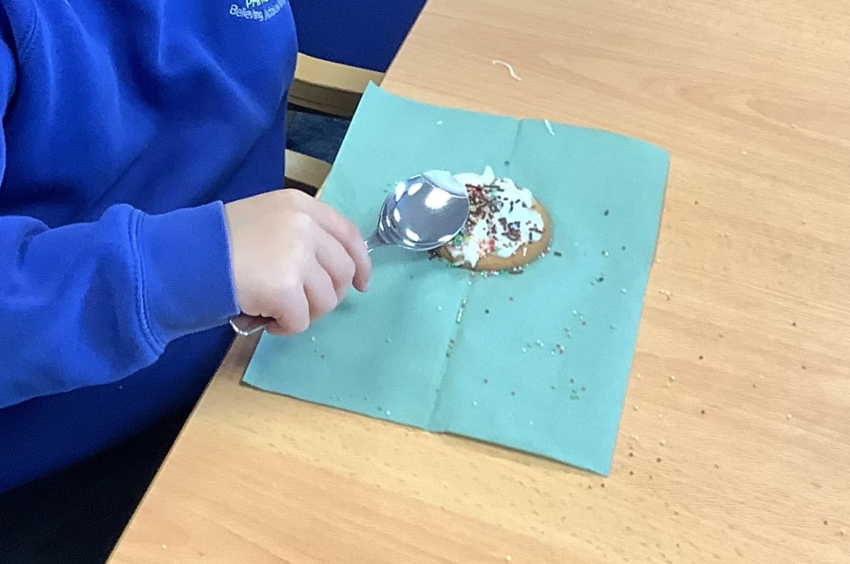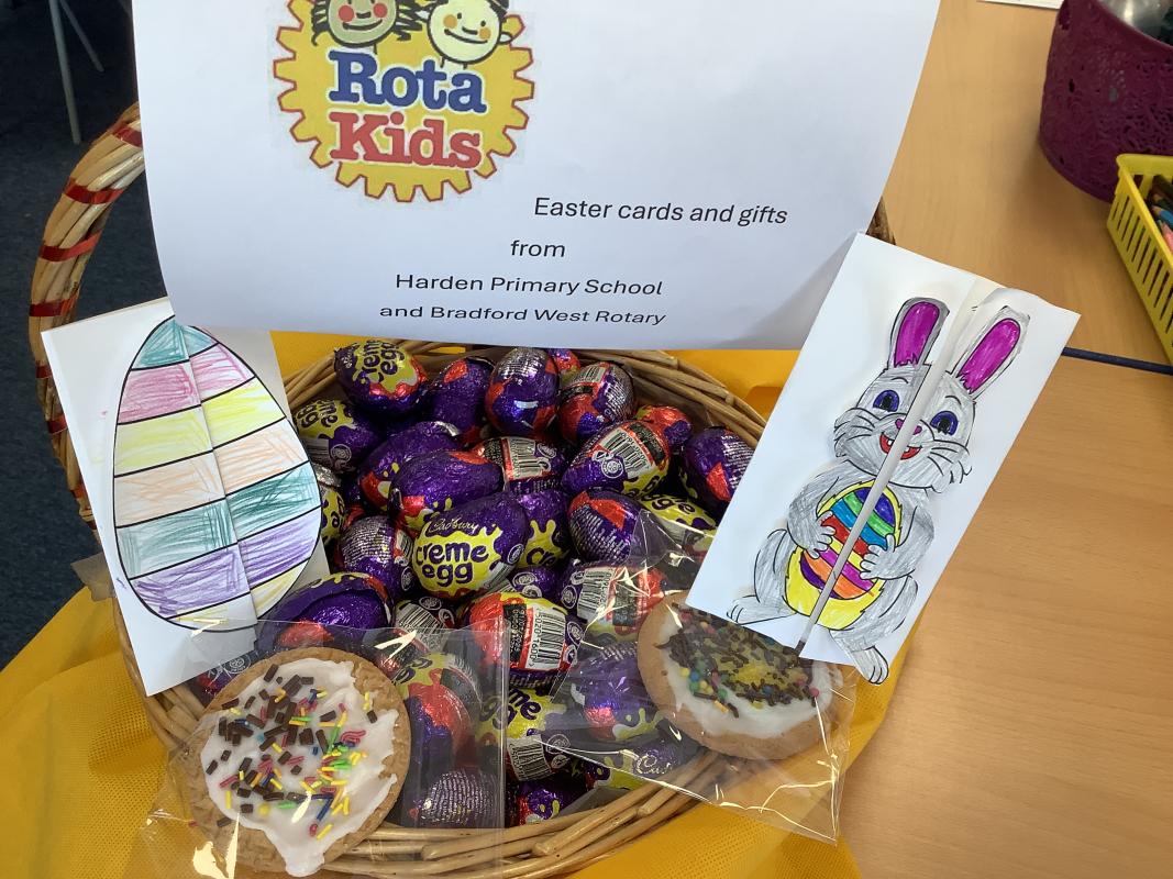 So, they decided to make Easter cards, to decorate Easter biscuits, and added to these, Cadbury's Easter eggs donated by our Club members. These were taken to homeless people at the Salvation Army.