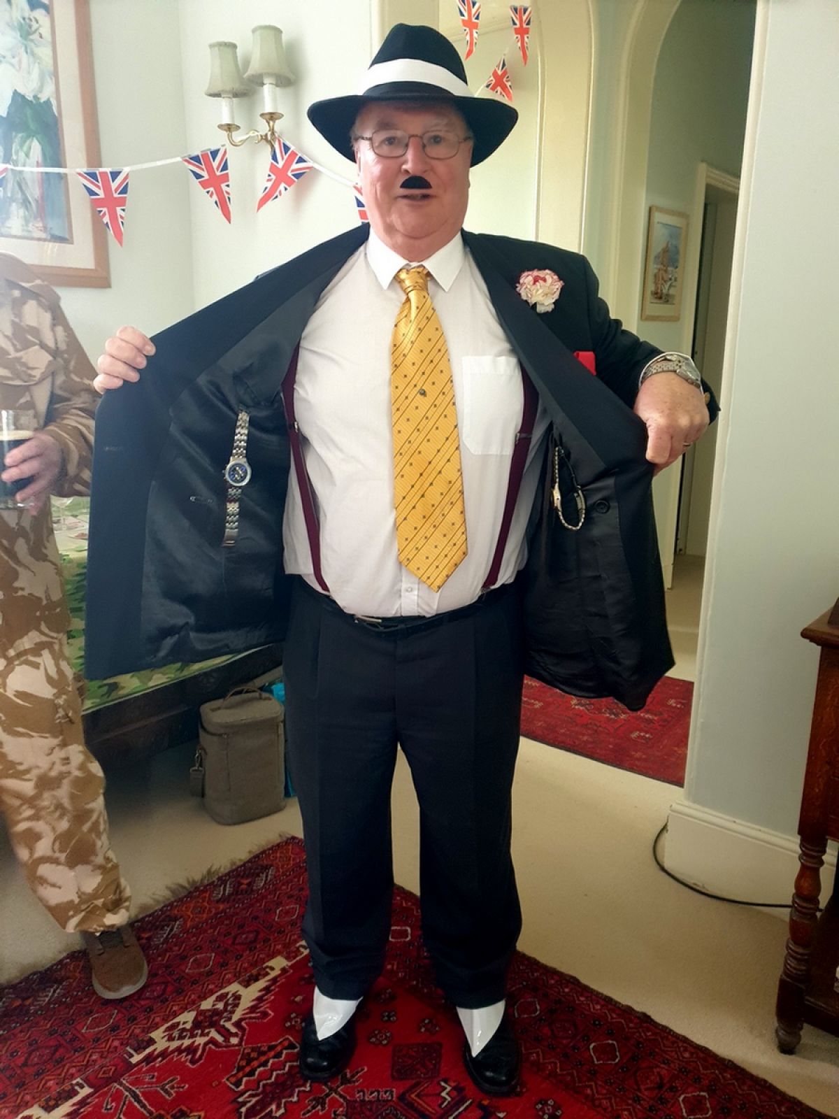 This was an enjoyable buffet lunch to celebrate VE Day. Some people dressed up, which was amusing - especially Paul, who dressed as a spiv!