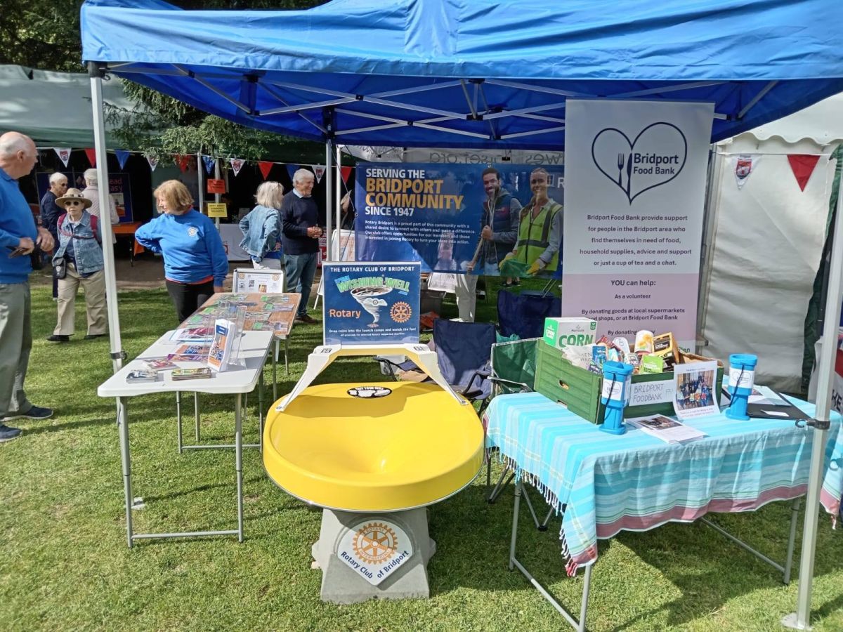 President Mike said 'Thanks to everyone who took part. It was a great effort and we managed to distribute a lot of the Tea & Cake leaflets to advertise out next event. It was also good opportunity to meet the many people involved with various ventures who make Bridport the amazing Town it is. We were very pleased to share our stand with the food bank'.