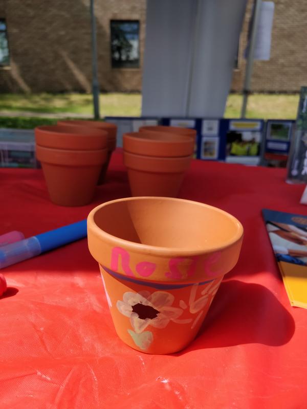 A good steady flow of people attended, which was also a classic car run and dog show and we enjoyed meeting people, providing children's activities which consisted of a simple game and being rewarded with a small prize and participating in arts and crafts, which consisted of painting ceramic pots and making paper flowers.
