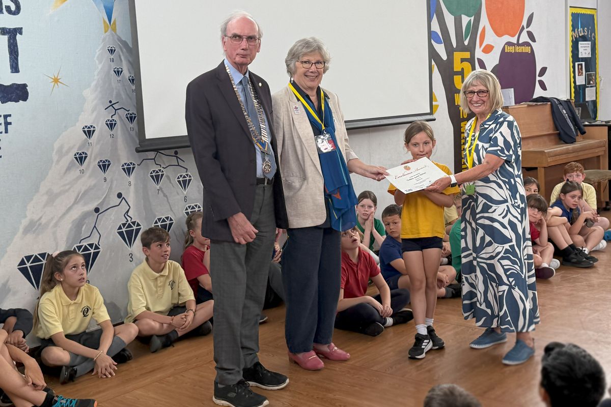 Anne said she was delighted to be with them that day and, accompanied by President Stephen King, she presented the RotaKid with the Excellence Award certificate to the applause of the whole school and all the Rotarians present.