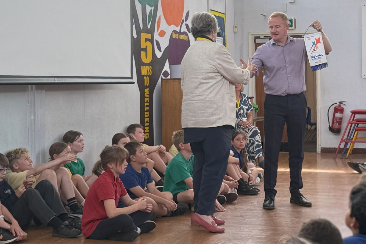 She presented Headteacher Mike Wade with a Rotary International banner for the Magic of Rotary.This was a physical reminder of work which we and the whole Rotary family do, to which these children had been part.