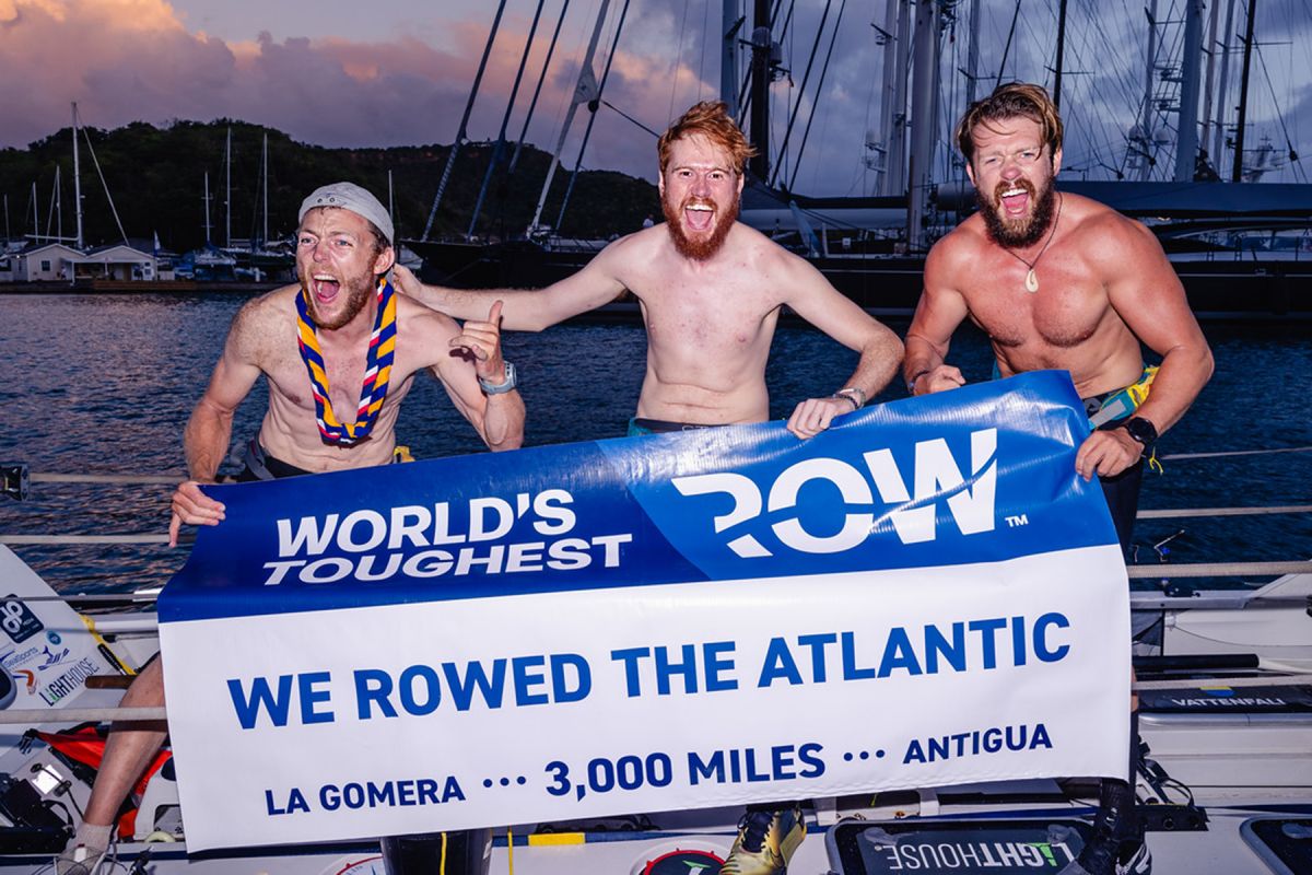 On day 41 they crossed the finish line at Antigua where they were reunited with friends and relatives. They were 9th overall (of 38) and 2nd in their class, having rowed an estimated 1 million oar strokes between them and lost an average 12.2kg per rower.