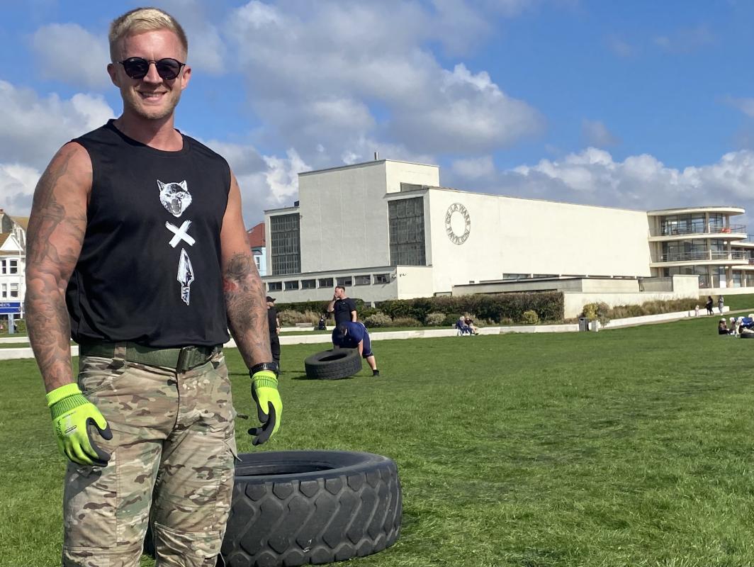 Darren Clark has asswembled a team to support his effort to raise over £5,000 for the Campaign Against Living Miserably(CALM). He has challenged himslf to attempt to flip a 120kg Tractor Tyre for 24hours on the lawns outside the De La Warr Pavillion, Bexhill-on-Sea.