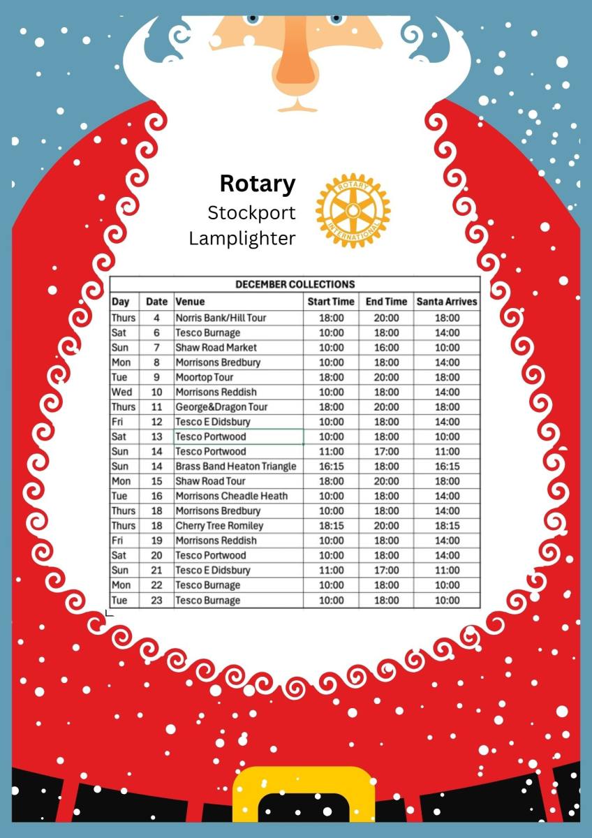 Santa's float will however be at Tesco Portwood on 13th and 14th , Morrisons Bredbury in the afternoon of the 18th and in all venues from 19th to the 23rd.