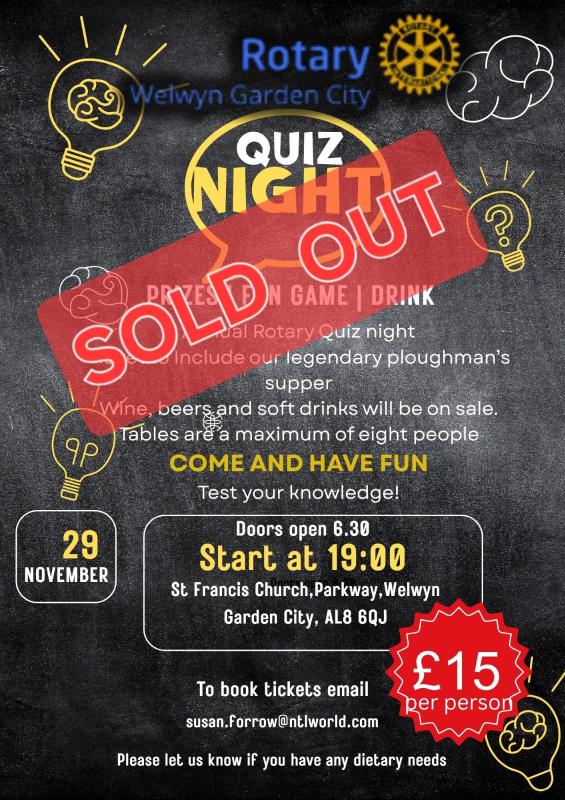 The Rotary Club of Welwyn Garden City hosted a hugely successful Annual Quiz Night on Saturday, 29th November 2025, attracting a fantastic crowd and raising significant funds for our Rotary Projects and charitable causes.