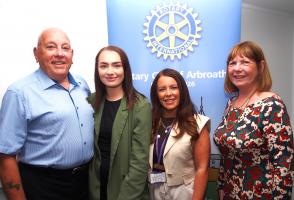 moreClub Members recently received advice on dealing with financial scams from Grace Cargill (centre left) and Gill McKaig (centre right) both from the Royal Bank Of Scotland. They were introduced by Member Ian Ballantyne, Grace's grandfather (extreme left)