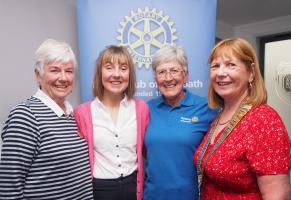 morePresident Liz (R) recently inducted two new members to our club. They were Alexis Smith (to Liz's right) and Vicky Smith (to Alexis's right). They were introduced to Rotary by club member Alison Stedman (far left)