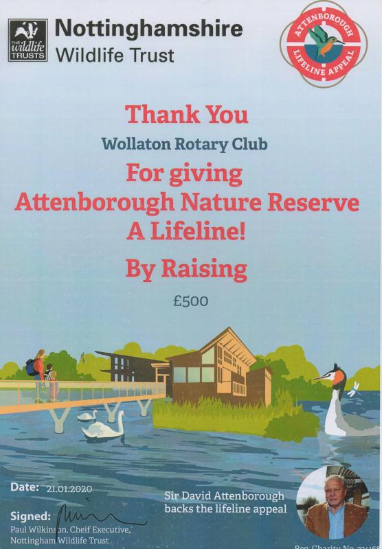 After donating £500 towards the £1 million needed by Attenborough Nature Reserve, the Club has been awarded a Certificate of Thanks in recognition of our efforts.