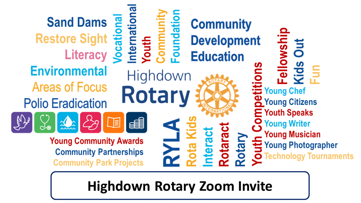 Due to the COVID-19- 19 Situation, Highdown Rotary currently meet online.