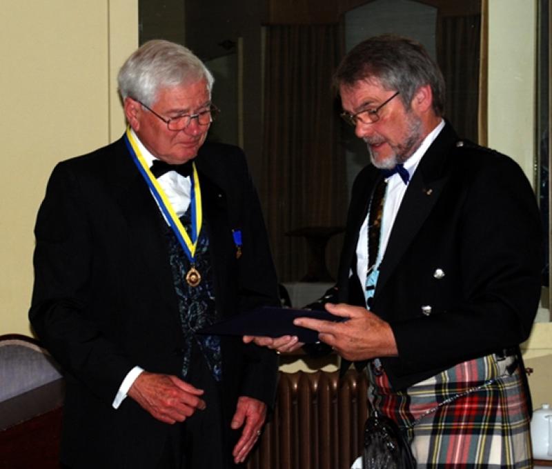 Rotarian Kneale Pearce was recognised for his many years of service with a Paul Harris Fellowship Award, presented by District Governor Mark Stewart at the Charter Dinner.