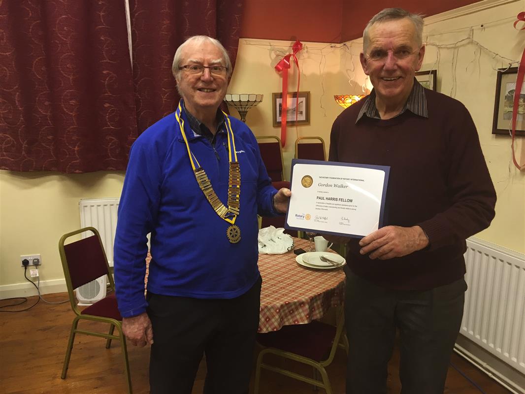 At the end of the evening, President Howard Binks presented Gordon Walker with a Paul Harris Fellowship in recognition and thanks for his contributions to Rotary over many years.