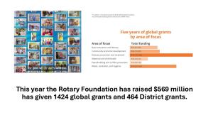 moreThe Rotary global charity, the Rotary Foundation, supports a wide range of international projects aligned to the Rotary "pillars". Yes, it really did raise over $500 million - it's not a typo!