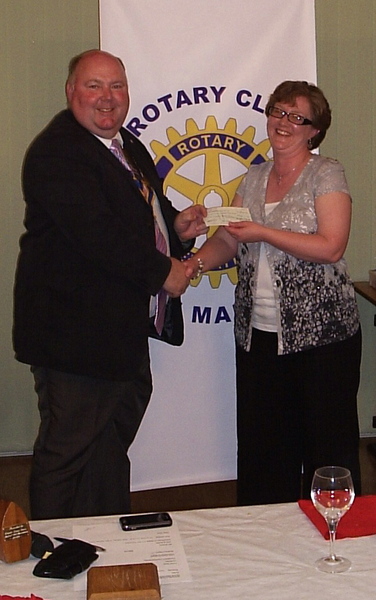 more Amanda Newman Manager of the March Centre receiving the donation from President Godfrey Smith.