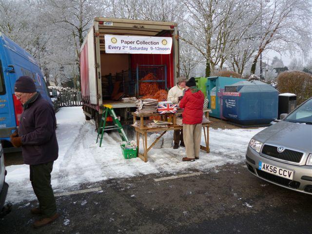 On the coldest day of the Winter, with temperatures down to 11 deg F, March Rotarians, from the President down, turned out in numbers to collect the newspapers donated by members of the Public. From National Daily's, the Racing Post, even down to our local tabloids, they came, by car, hand, or shopping bags, in City Road Car Park