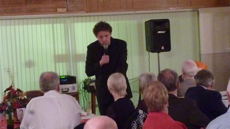 Now it was time to loosen belts, sit back, and enjoy the Cabaret. Comedian Phil Lowen, performed in a style entirely in keeping with the audience, Professional, quiet, very funny and visual, with a good singing voice, a show that would entertain grand children to grand parents. Many a rib was ticked just by twisting the obvious.
