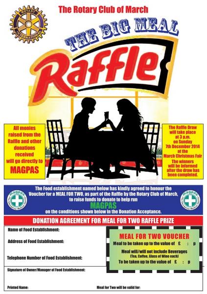 Prizes Donated by March Restaurants Take Aways, Pubs Etc for MAGPAS Big Meal Raffle |