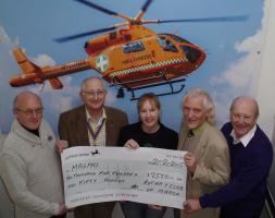 more Presentation of cheque for £2550.00 to Magpas at Huntingdon. L� R. George White. Club Representative. Godfrey Smith, President. Emma Sanders, Magpas Fund Co-ordinator, Robert Freeman, Press Officer, Paul Garner, Committee Chairman