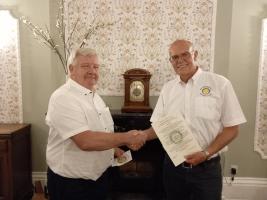 more Immediate Past President Mike Gicquel welcomes Mike Nairn as a new member of the Rotary Club