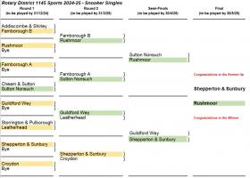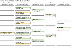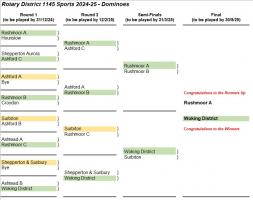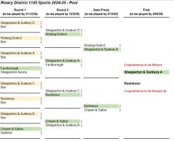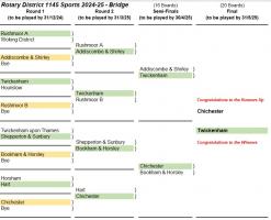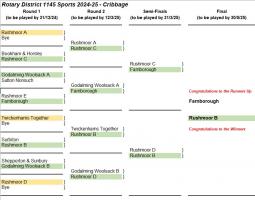 Simon Edmands of Leatherhead Rotary Club is managing the quiz, Tim Dunkley of Farnborough Rotary Club will manage the badminton, darts, dominoes, pool and table tennis this year. Margaret Gilroy-Smith will continue to manage the bridge, cribbage, skittles, snooker and ten pin bowling.