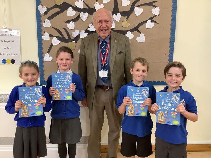Year 3 pupils were each presented with a dictionary which had been kindly donated by Chelwood Bridge Rotary Club. Ken Biggs (former Head Teacher of Chew Valley Secondary School) made the presentation, he also discussed with the whole school the work that the club undertakes around the world such as raising money for water boxes and polio vaccines.